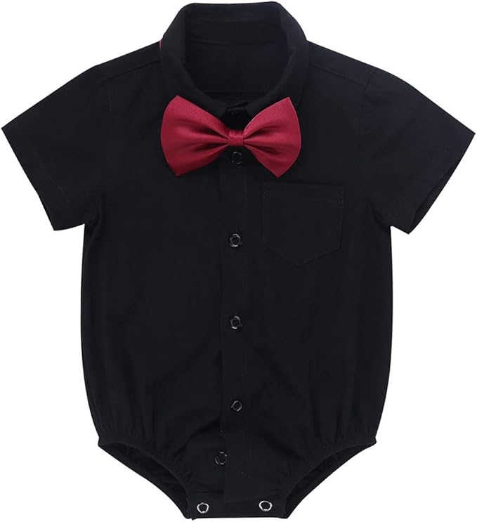 Acsuss Newborn Infant Baby Boys Gentleman Romper Formal Pageant Wedding Bowtie Shirt Bodysuit Jumpsuit Outfits