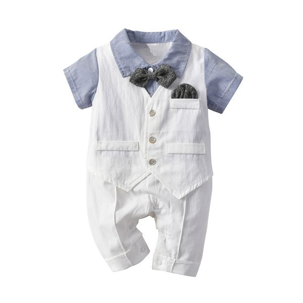 2019 2019 Formal Newborn Infant Baby Boys Casual Romper Jumpsuit Cotton Short Sleeve Clothes Summer Sunsuit Outfits Fake Two Pieces From Westbit17
