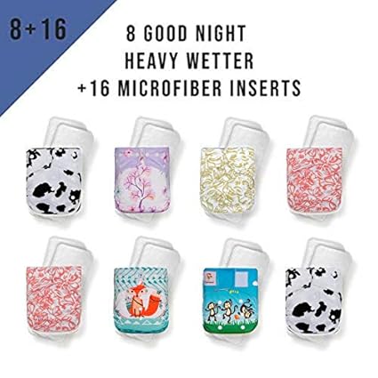 Kawaii Baby Good Night Heavy Wetter Pack Of 8 Baby Cloth Diapers With 16 Stay Dry Super Absorbent Microfiber Inserts Unisex Overnight Pocket Diaper