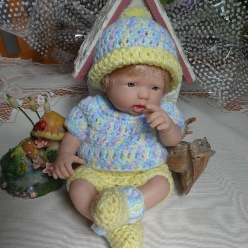 Crocheted Outfit For 9 5 Inch Doll Mini La Newborn Infant Set Boy Girl Pastel Blue Purple Yellow