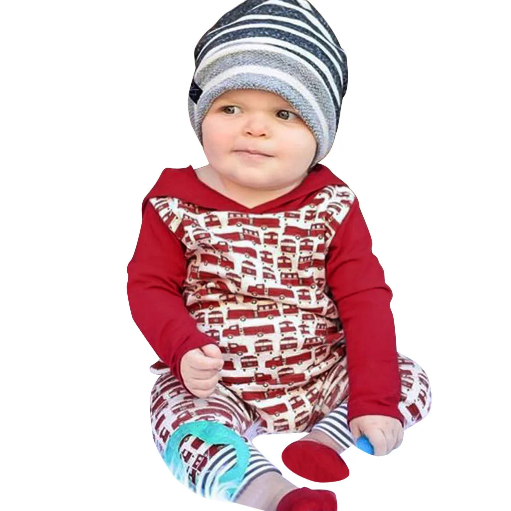 Us 5 49 18 Off Newborn Baby Boys Christmas Clothes Spring Autumn Clothes Sets Long Sleeve Hooded Letter Print Sweatshirt Striped Pants 0 24m In