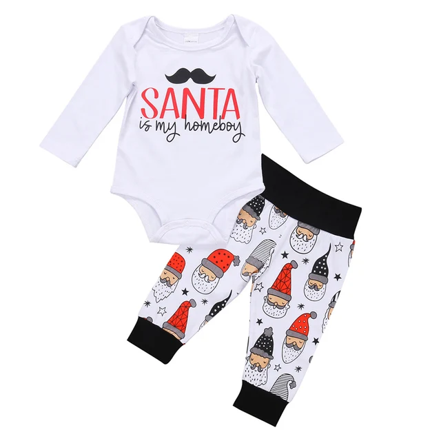 Us 9 62 5 Off Christmas Clothes Set Newborn Baby Boy Girl Beard Letter Romper Tops Long Pants 2pcs Outfits Children Clothing Set Kids Clothing In