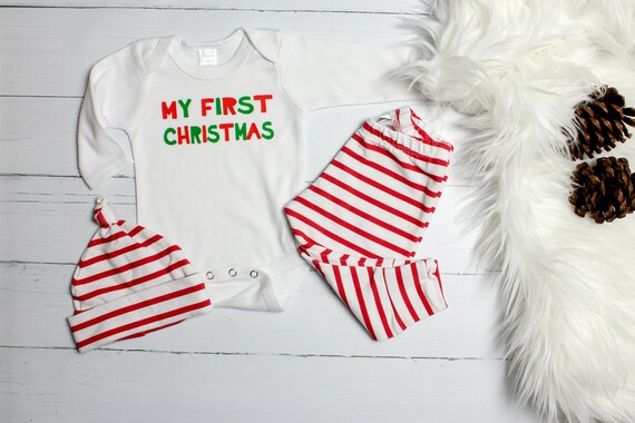 Baby Boys First Christmas Outfit Unisex Baby S 1st Christmas Clothes For Newborn Boys Or Girl Red And Green Striped Pants