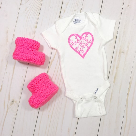 Pink Heart Onesie Newborn Baby Clothes Baby Shower Gift Valentine S Day Baby Outfit Custom Made Baby Clothing Baby Clothing Bundle Pack