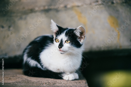 Lovely Newborn Homeless Poor Kitten Sitting Under City