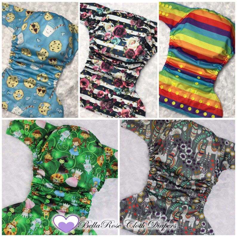 Milk Cookies Merlot Rose Stripe Rainbow Stripe Emerald City Llama Land One Size Newborn Cloth Pocket Diaper
