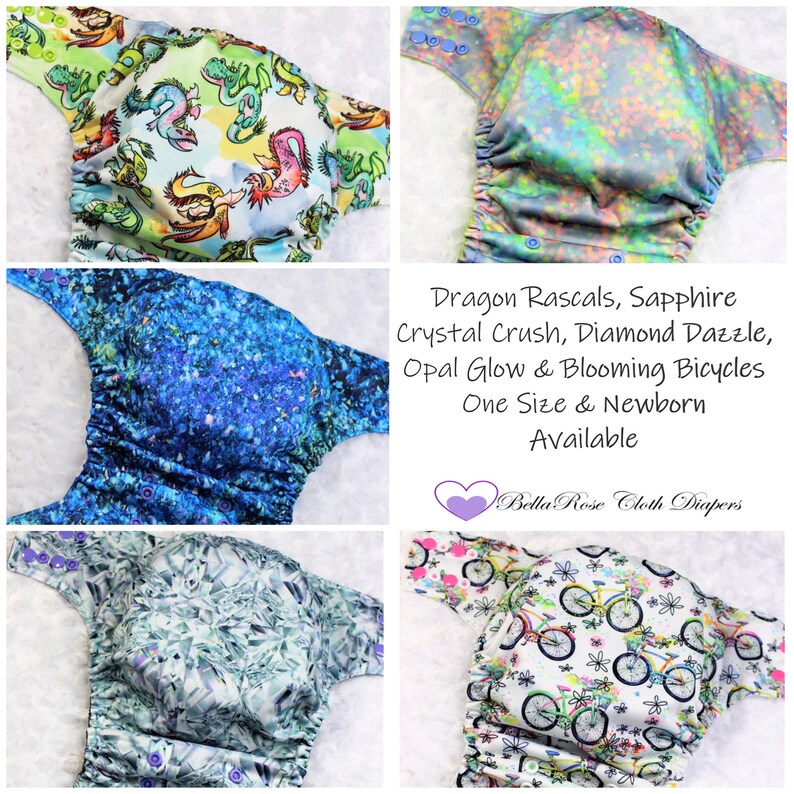 New Dragon Rascals Sapphire Crystal Crush Diamond Dazzle Opal Glow Blooming Bicycles One Size Newborn Cloth Pocket Diapers