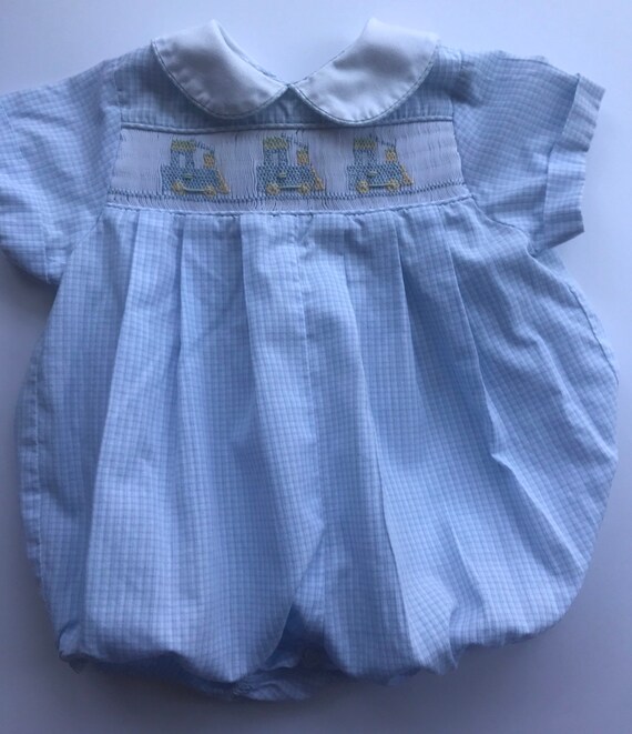 Vintage Baby Boys Bubble Romper Made In Usa Newborn To 3 Months Smocked Bubble