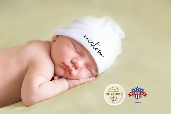Custom Baby Hat Organic Cotton Made In Usa Baby Name Hat Personalized Baby Hat Newborn Hat Baby Girl Boy Hat Baby Shower Gift Logo Hat