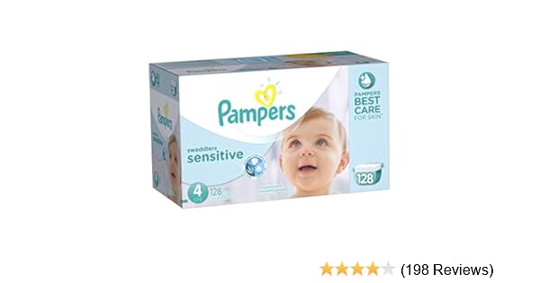 Pampers Swaddlers Sensitive Diapers Size 4 Economy Pack Plus 128 Count One Month Supply