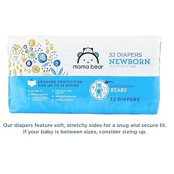 Amazon Brand Mama Bear Best Fit Diapers Newborn 32 Count White Print Packaging May Vary