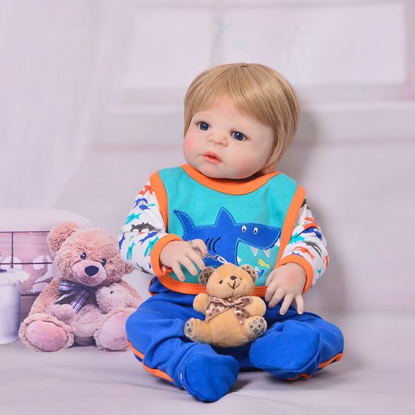 Newborn Doll Realistic 57 Cm Full Silicone Baby Reborn Doll Boy Vinyl Look Real Fake Baby Toy For Kid Playmate Gift Xmas Present Free Doll Clothes