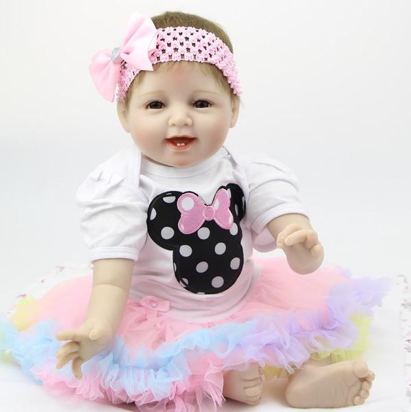 Handmade Reborn Baby Doll 22 Inch 55 Cm Soft Silicone Baby Girl Smiling Newborn Dolls Children Birthhday Xmas Gift Accessories Free Doll Clothes