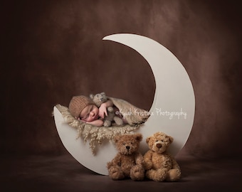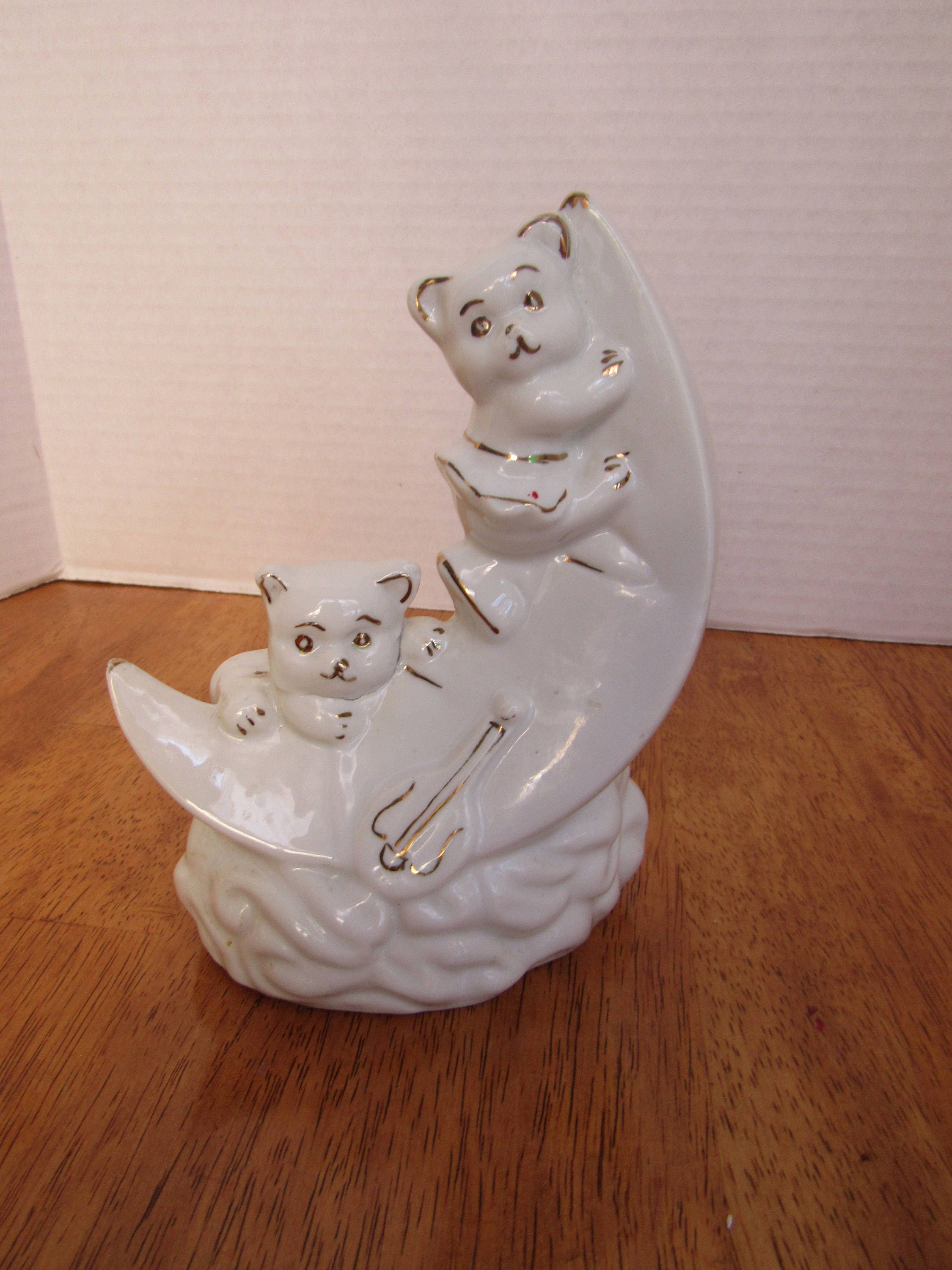 White Gold Highlights Sleeping Quarter Moon 2 Bear Cubs Cats Mandolin Guitar Nursery Decor Bedroom Decor Baby Shower Newborn Gift 2652