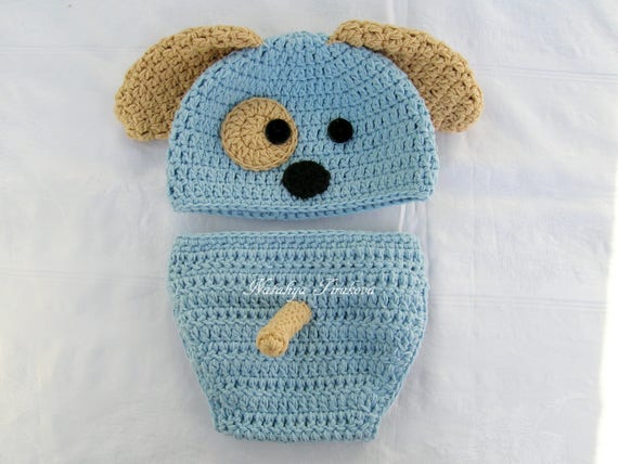 Crochet Puppy Baby Hat Diaper Cover Set Newborn Puppy Outfit Baby Boy Clothes Newborn Photo Prop Puppy Outfit Puppy Set Crochet Doggy Set