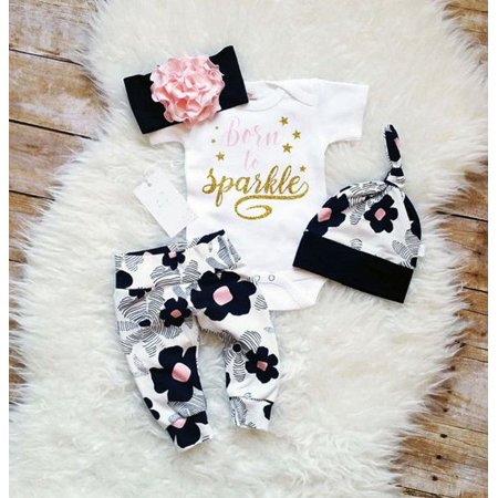 4x Newborn Infant Baby Boy Girl Outfits Clothes Set Bodysuit Pants Leggings Hat