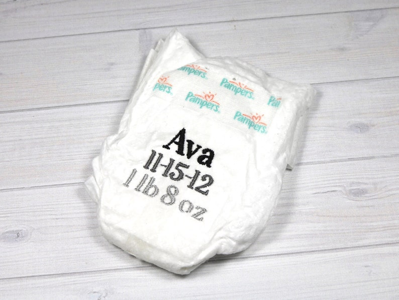 Micro Preemie Birth Announcement Diaper Embroidered Diaper Baby Keepsake For Memory Box Or Shadow Box