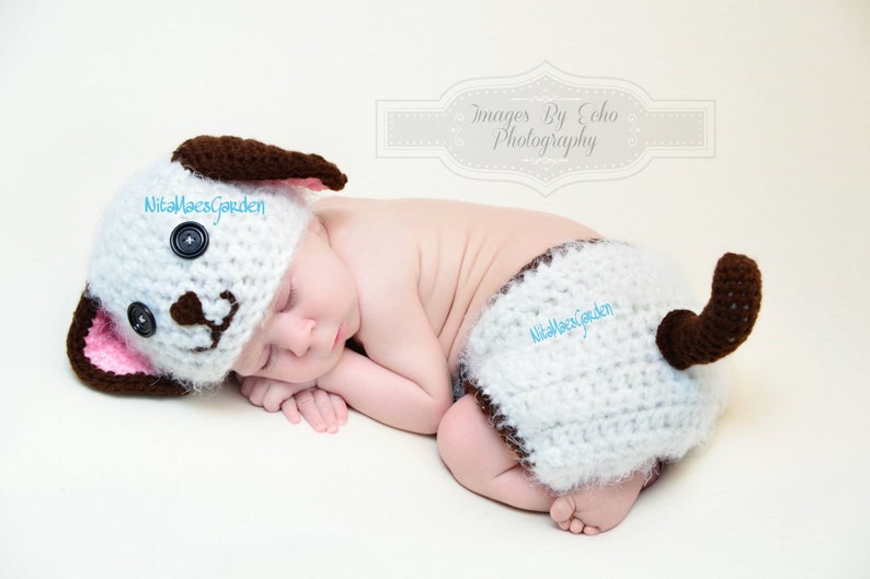 Baby Puppy Dog Hat Diaper Cover Preemie Newborn 0 3m 6m Soft Crochet Photo Prop Baby Clothes Boys Girls Gender Neutral Super Cute