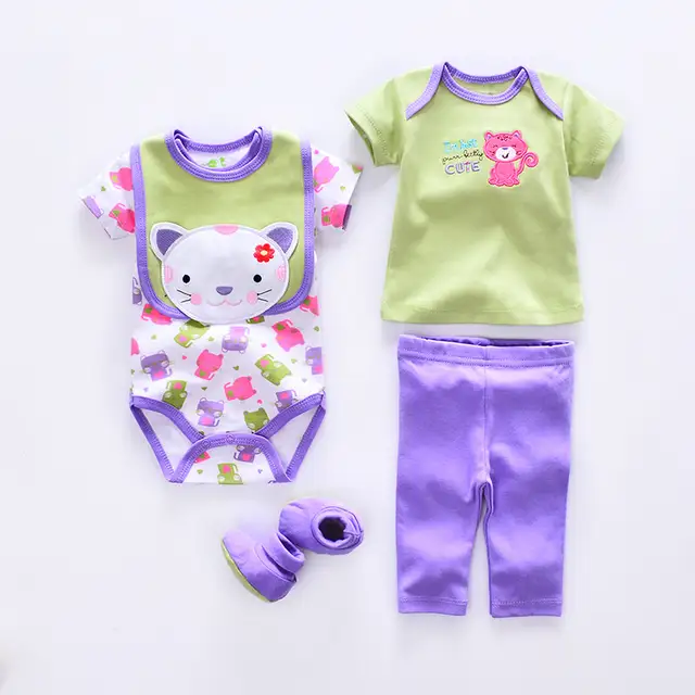 Us 9 91 16 Off Summer Baby Clothing Sets Cotton Baby Girl Clothes Newborn 5pcs Suit Infant Cute Owl Cat Cow Lion Romper Pants Socks Bib Shirt In