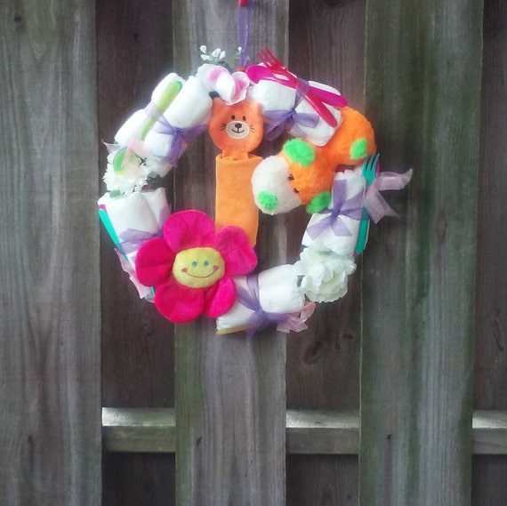 Pink Pamper Wreath Newborn Baby Shower Gift First Baby Gift Newborn Pampers Baby Powder Scented Baby Girl Diaper Wreath