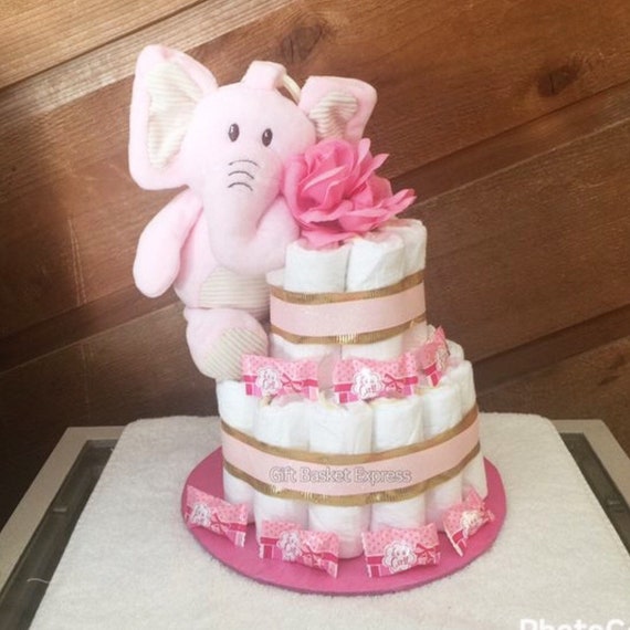 Pink Gold 2 Tier Elephant Diaper Cake Newborn Princess Baby Girl Shower Gift Centerpiece Pampers Size 1 Its A Girl
