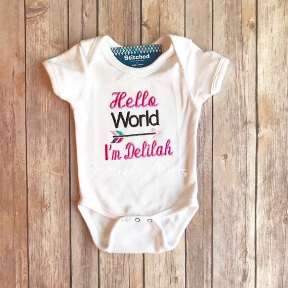 Personalized Newborn Baby Girl Outfit Hello World Custom Funny Baby Girl Gift Idea