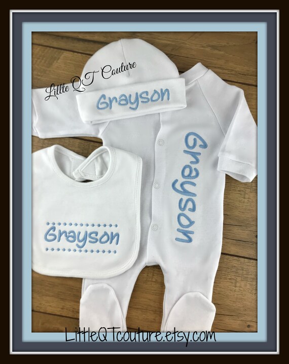 Baby Boy Coming Home Outfit Personalized Newborn Baby Shower Gift With First And Middle Name