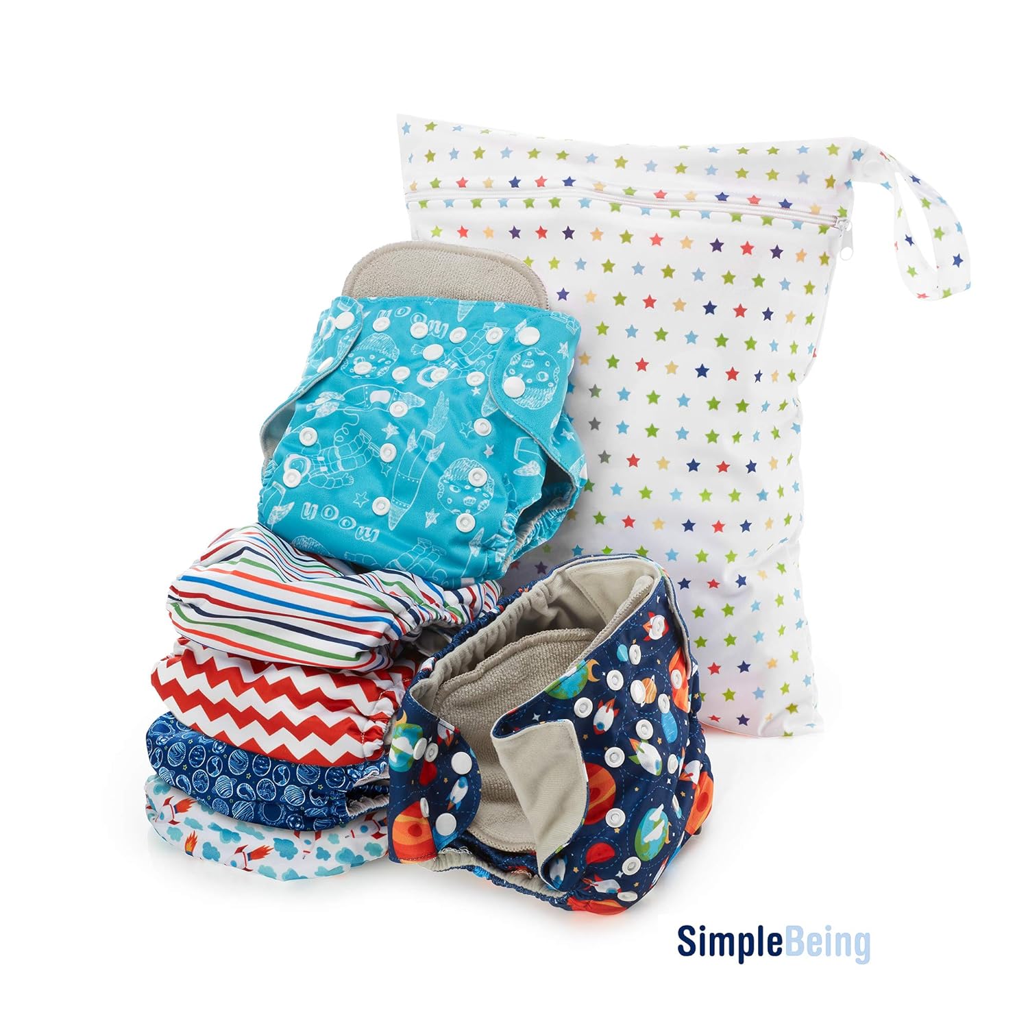 Simple Being Reusable Cloth Diapers Double Gusset One Size Adjustable Washable Soft Absorbent Waterproof Cover Eco Friendly Unisex Baby Girl Boy