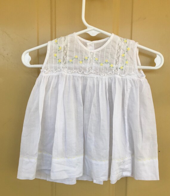 Vintage Baby Dress White Infant Dress With Yellow Embroidered Flowers Handmade Newborn Dress Vintage Doll Clothing Newborn Clothing
