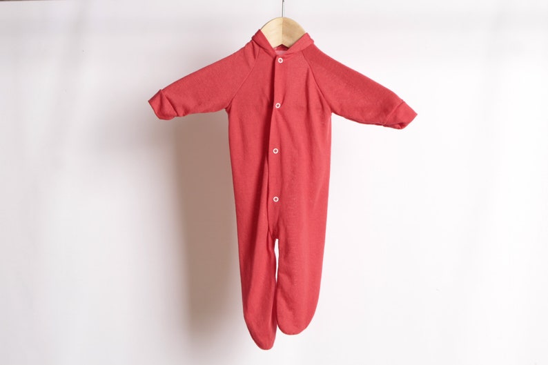 Vintage Newborn Baby Red Full Body Onesie Bodysuit Jumper Red White Mid Century Vintage Kids Clothing