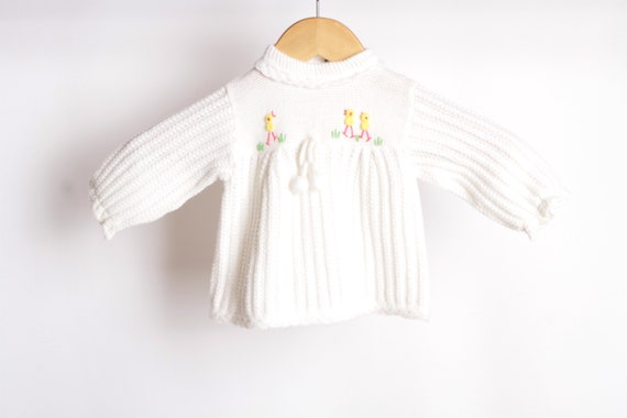 Vintage Newborn Duck Tiny Duckies White Knit Sweater Top Size 12 18 Months