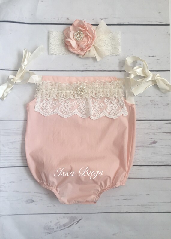 Pale Pink Vintage Lace Newborn Romper Headband Set Baby