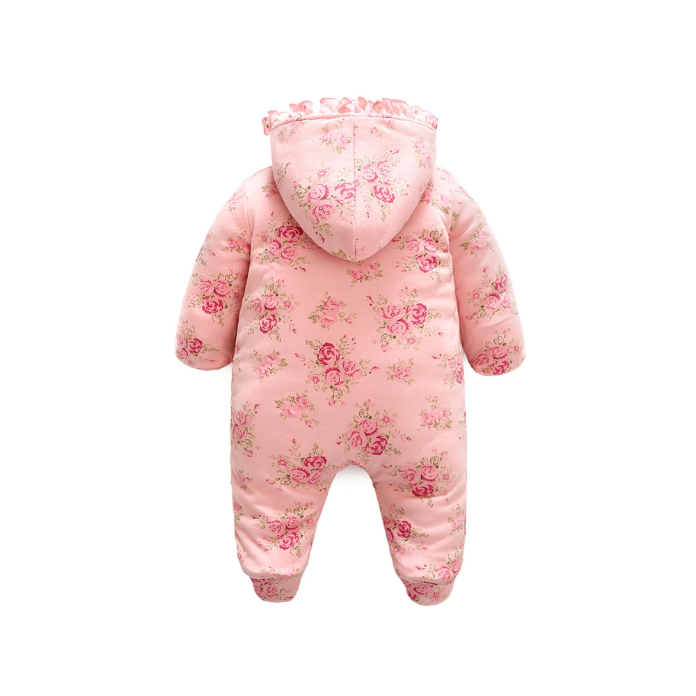 Winter Newborn Baby Girl Rompers Thicken Warm Cotton Jumpsuit Hooded Clothing Floral Princess Christmas Girls Onesie