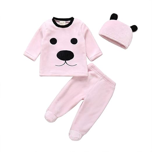 3pcs Winter Newborn Baby Girl Boy Cartoon Tops Pants Outfits Fluffy Warm Clothes Vova