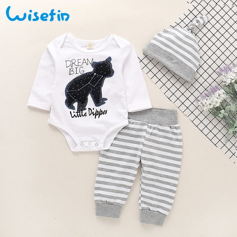 Wisefin Newborn Baby Boy Clothing Set 3 Piece Big Bow Children Infant Clothes For 0 18 Months Toddler Baby Winter Set For Boys