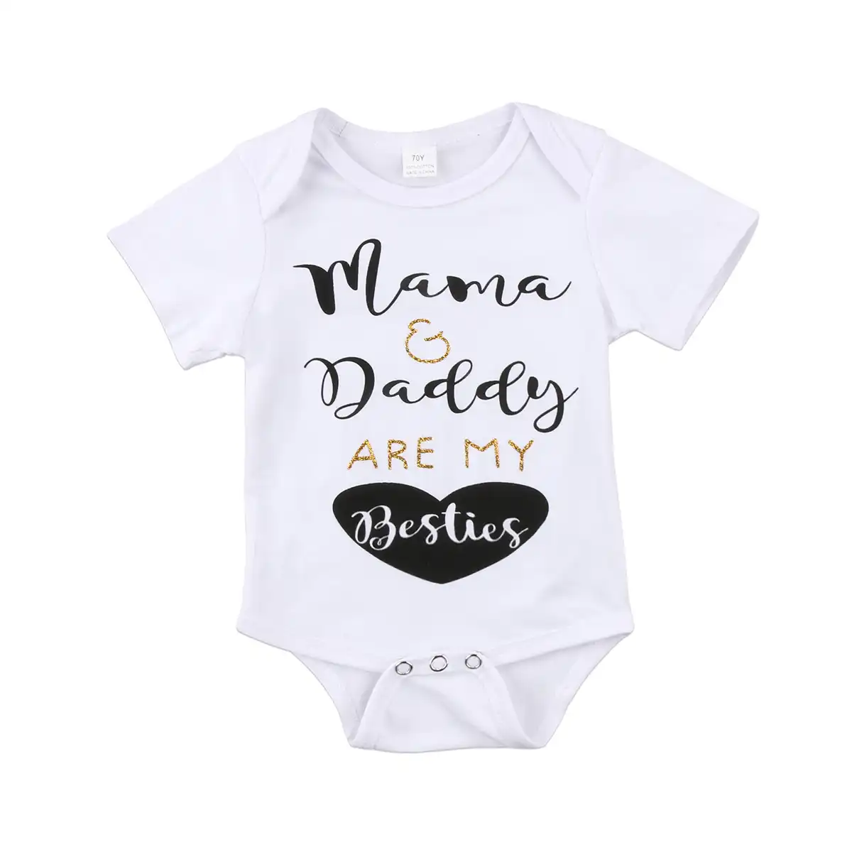 Cute Newborn Baby Boy Girl Love Heart Rompers Jumpsuit Summer Short Sleeve Cotton Mama Daddy Romper Letters Ptint Outfit Clothes
