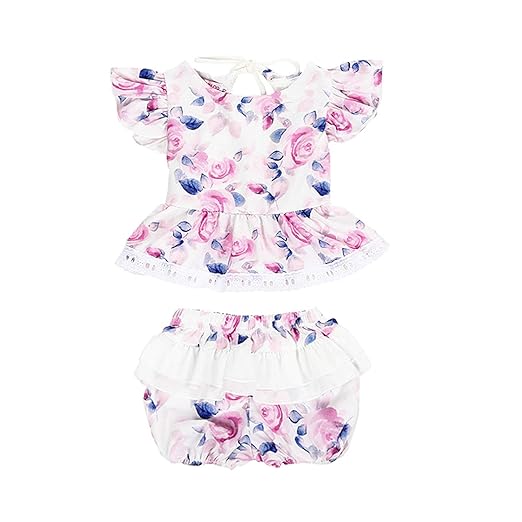 2019 Cute Newborn Clothes 2018 Summer Baby Girl Clothes Fashion Off Shoulder Flare Sleeve Floral Tank Tops Bloomers Shorts Sunsuit Outfits From