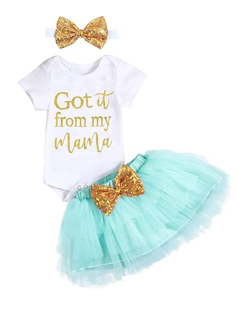 Baby Girl Summer Outfits Got It From My Mama Short Sleeve Rompers For Girls Tutu Skirt With Headband Infant Clothes Set