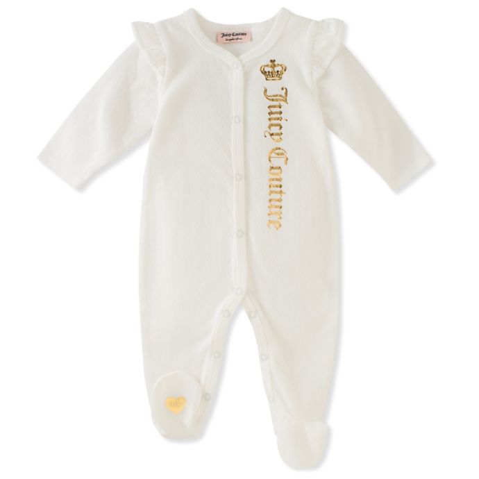 Juicy Couture Pointelle Footed Coverall In White Gold Bed