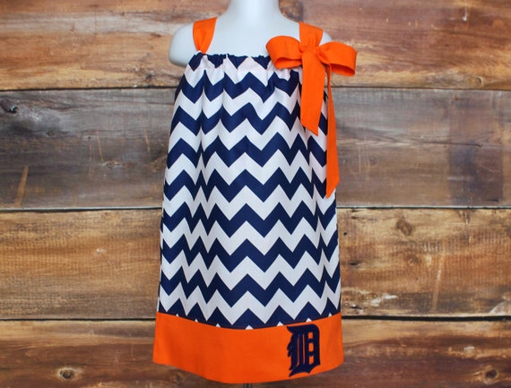 Detroit Tigers Dress Newborn Baby Toddler Child Girls Pillowcase Dress Infant Detroit Tigers Outfit Navy Blue Orange Baseball