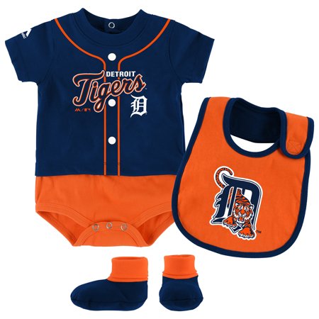 Majestic Detroit Tigers Newborn Infant Navy Gray Baseball Property Bodysuit Bootie Bib Set