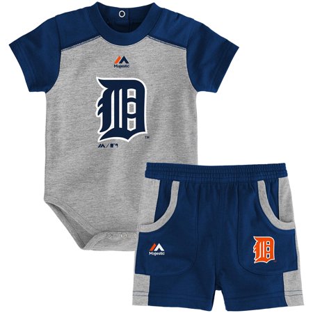 Detroit Tigers Majestic Newborn Double Header Bodysuit And Short Set Gray Navy