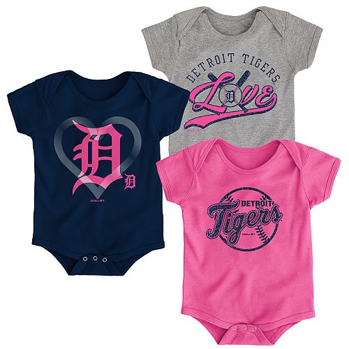 Baby Girl Detroit Tigers Cute Catcher Bodysuit 3 Pack