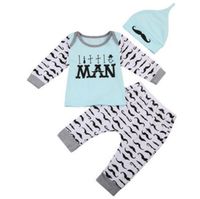 2017 In Stock 3pcs Newborn Baby Suits Toddler Infant Kids Little Man Funny Shirts Pants Children Boy Moustache Printed Clothes Outfits