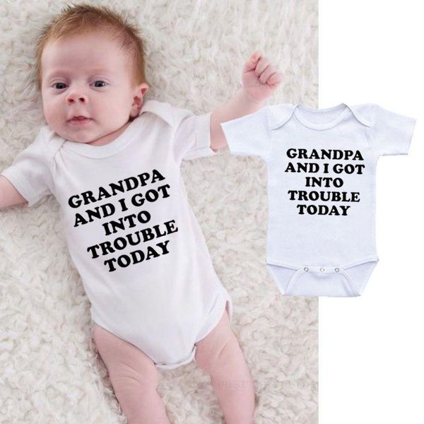 2019 Funny Baby Onesie Bodysuit Infant Newborn Grandpa And I Got Into Trouble Print Cotton Baby Boy Girl Clothes 2019 Summer Cheap Wholesale From