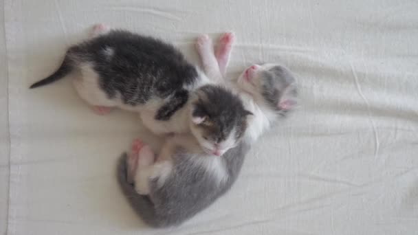 Funny Video Two Pets Cute Newborn Kittens Sleep Teamwork On The Bed Pets Concept Pets Concept Little Lifestyle Cats