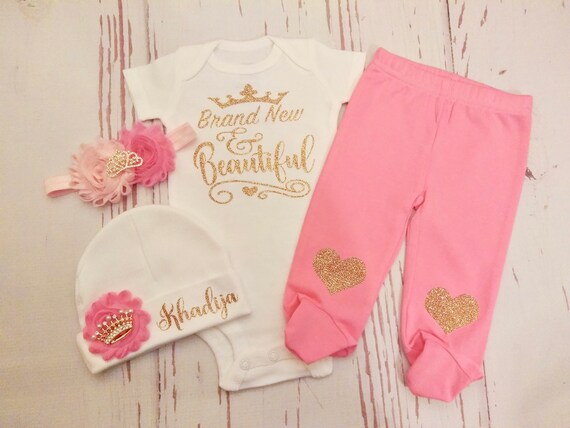 Baby Girl Clothes Newborn Hospital Outfit Baby Girl Personalized Outfit Baby Girl Outfit Baby Shower Gift Name Baby Shirt Hat