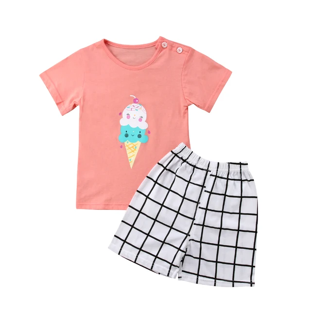 Us 4 52 Uk Newborn Infant Baby Boy Girl Clothes Ice Cream Pattern Orange Tops T Shirt Plaid Short Pants Outfits Set In Clothing Sets From Mother