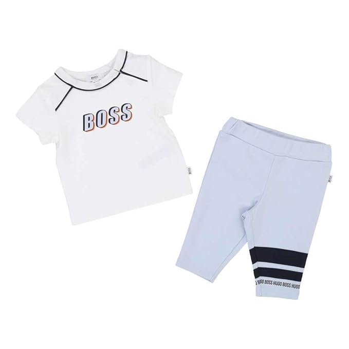 Hugo boss kids white pale blue t shirt and leggings set. Reworking classic pieces for the childrenswear market including stylish polo shirts t shirts and hoodies. Hugo boss boys hoodies sale hugo boss boys tracksuits sale hugo boss boys t shirts sale hugo boss boys sweatshirts sale hugo boss baby boy tops bodysuits sale hugo boss boys shoes sale.