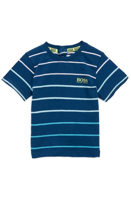 Boss Kids Logo T Shirt In A Striped Cotton Blend
